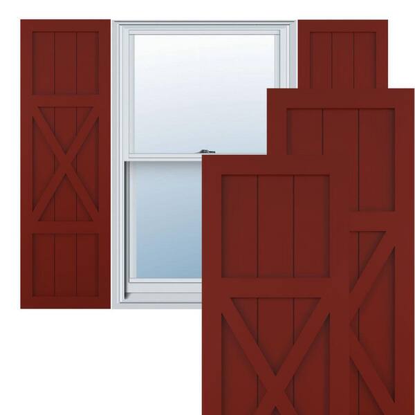 12 in. x 71 in. True Fit PVC Center X-Board Farmhouse Fixed Mount Board and Batten Shutters Pair in Pepper Red