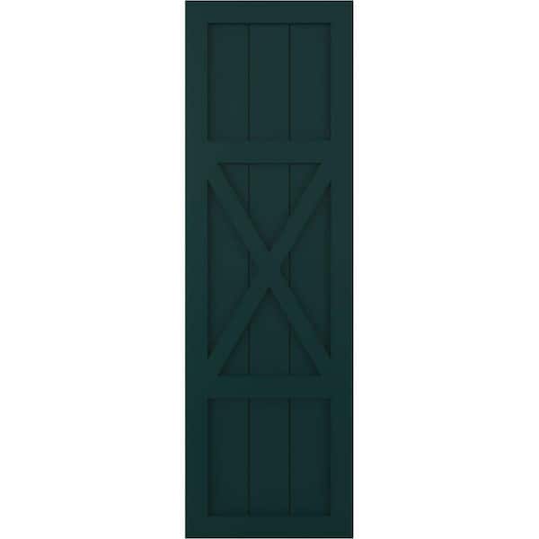 12 in. x 71 in. True Fit PVC Center X-Board Farmhouse Fixed Mount Board and Batten Shutters Pair in Thermal Green