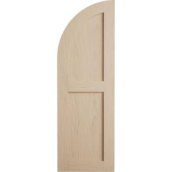 12 in. x 72 in. Polyurethane Rough Sawn Two Equal Flat Panel w/Quarter Round Arch Top Faux Wood Shutters Primed Tan