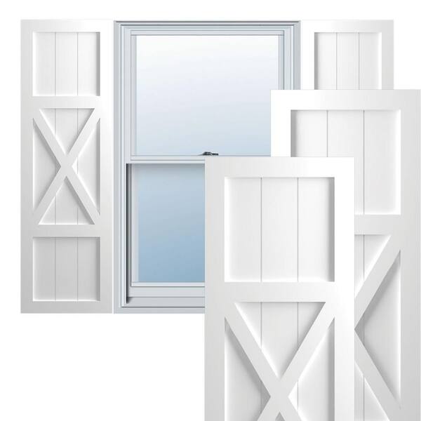 12 in. x 72 in. True Fit PVC Center X-Board Farmhouse Fixed Mount Board and Batten Shutters Pair in White