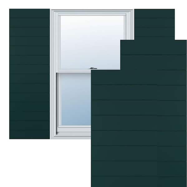 12 in. x 72 in. True Fit PVC Horizontal Slat Modern Style Fixed Mount Board and Batten Shutters Pair in Thermal Green