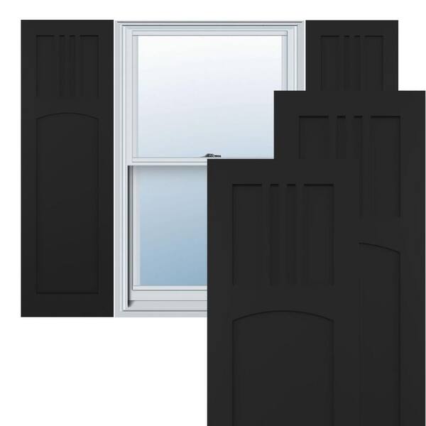 12 in. x 73 in. PVC True Fit San Miguel Mission Style Fixed Mount Flat Panel Shutters Pair in Black