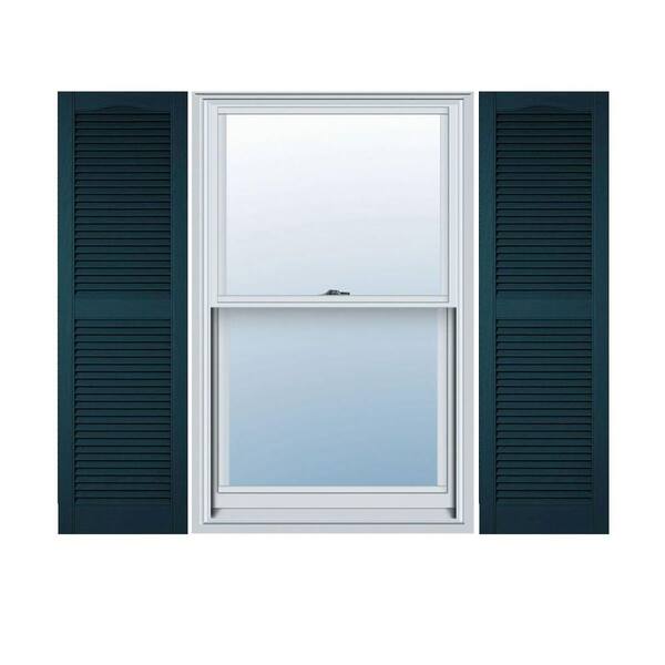 12 in. x 76 in. Lifetime Vinyl Custom Cathedral Top Center Mullion Open Louvered Shutters Pair Midnight Blue