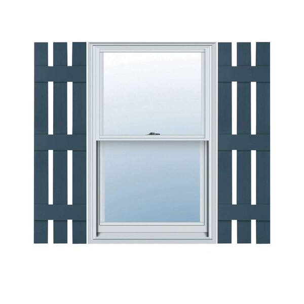 12 in. x 76 in. Lifetime Vinyl Custom Three Board Spaced Board and Batten Shutters Pair Classic Blue