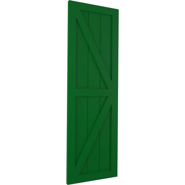 12 in. x 77 in. PVC Two Equal Panel Farmhouse Fixed Mount Board and Batten Shutters with Z-Bar Pair in Viridian Green