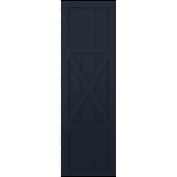 12 in. x 77 in. True Fit PVC Center X-Board Farmhouse Fixed Mount Board and Batten Shutters Pair in Starless Night Blue