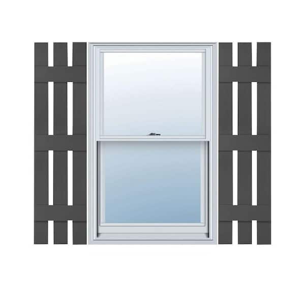 12 in. x 83 in. Lifetime Vinyl Custom Three Board Spaced Board and Batten Shutters Pair Tuxedo Grey