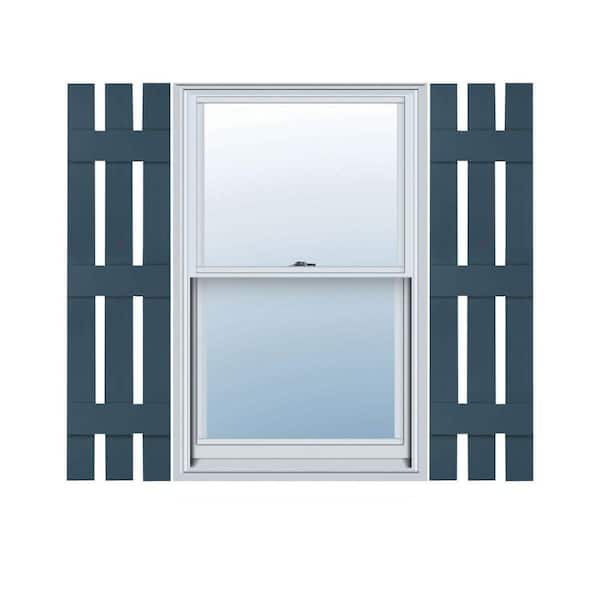 12 in. x 92 in. Lifetime Vinyl Custom Three Board Spaced Board and Batten Shutters Pair Classic Blue