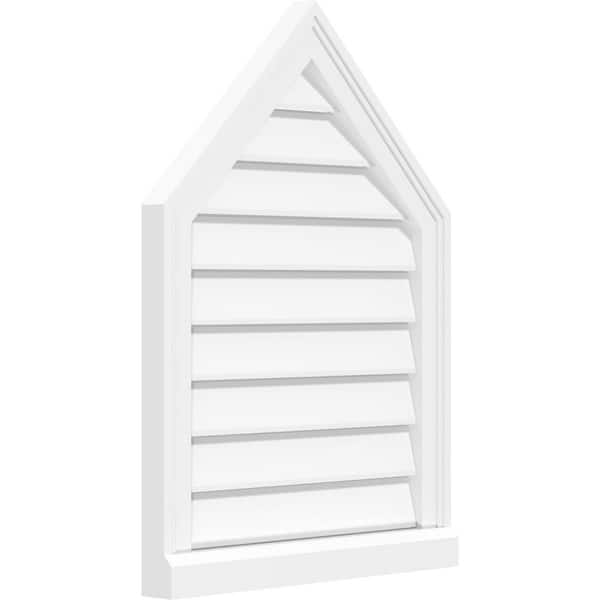12" x 22" Peaked Top Surface Mount PVC Gable Vent 4/12 Pitch: Functional with Brickmould Sill Frame
