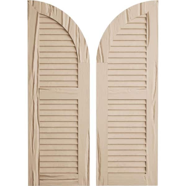 12" x 74" Timberthane Polyurethane Riverwood 2-Equal Louvered Quarter Round Arch Top Faux Wood Shutters Pair in Primed