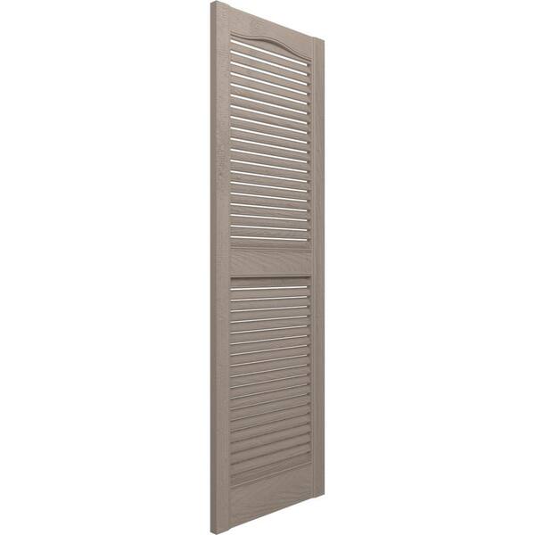 14-1/2 in. x 29 in. Lifetime Vinyl Custom Cathedral Top Center Mullion Open Louvered Shutters Pair Clay