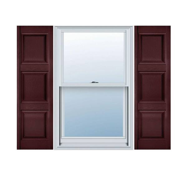 14-1/2 in. x 34 in. Lifetime Vinyl Custom 3 Equal Raised Panel Shutters Pair Bordeaux
