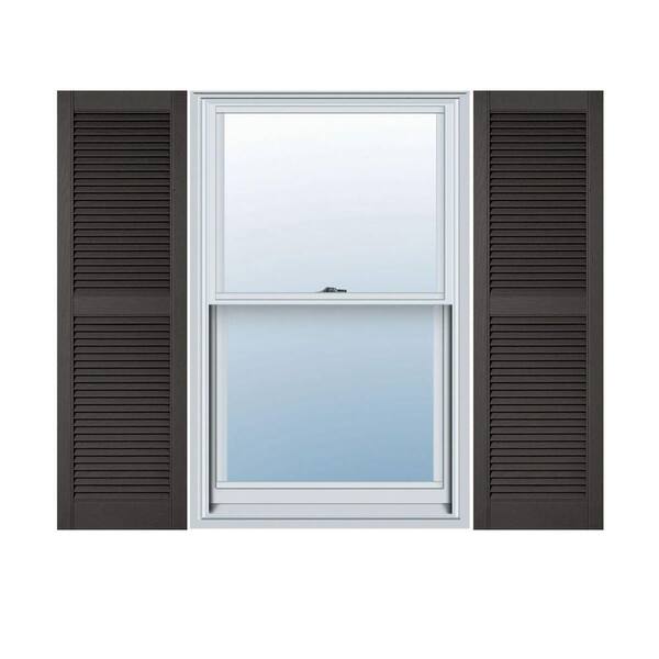 14-1/2 in. x 36 in. Lifetime Vinyl Custom Straight Top Center Mullion Open Louvered Shutters Pair Musket Brown