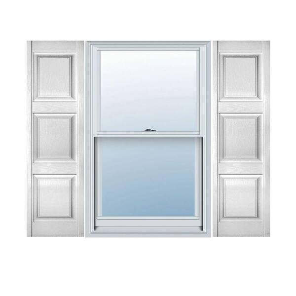 14-1/2 in. x 42 in. Lifetime Vinyl Custom 3 Equal Raised Panel Shutters Pair Bright White