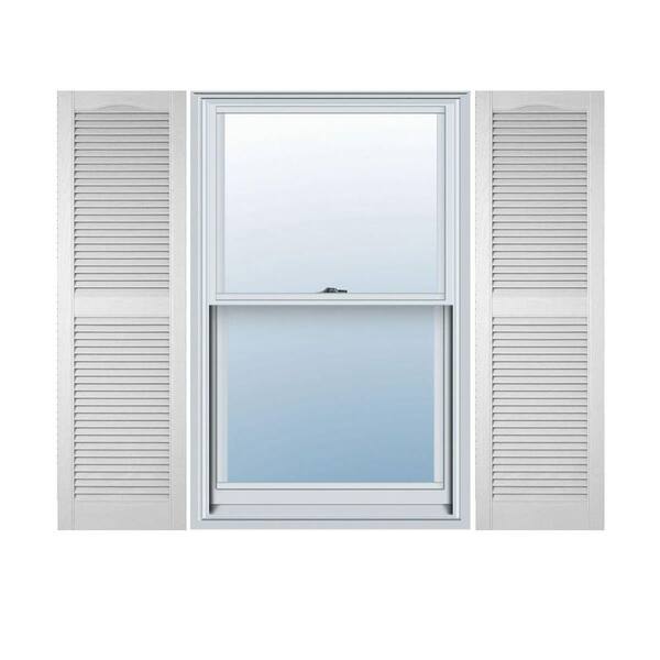 14-1/2 in. x 48 in. Lifetime Vinyl Custom Cathedral Top Center Mullion Open Louvered Shutters Pair White