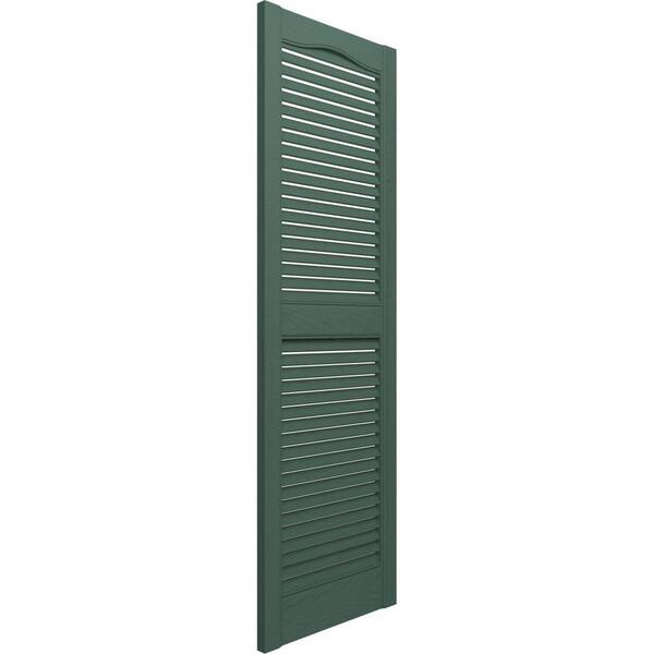 14-1/2 in. x 62 in. Lifetime Vinyl Custom Cathedral Top Center Mullion Open Louvered Shutters Pair Forest Green