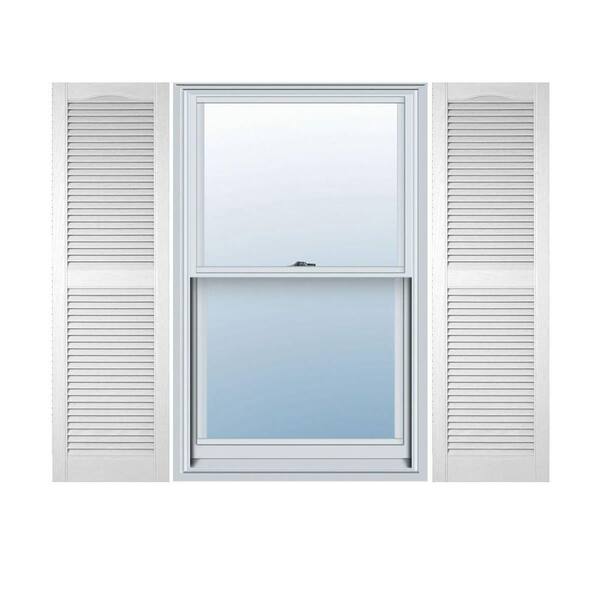 14-1/2 in. x 67 in. Lifetime Vinyl Custom Cathedral Top Center Mullion Open Louvered Shutters Pair Bright White