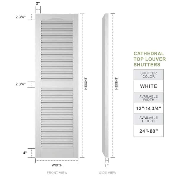 14-1/2 in. x 67 in. Lifetime Vinyl Standard Cathedral Top Center Mullion Open Louvered Shutters Pair Forest Green