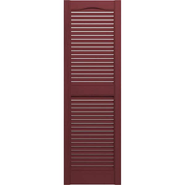 14-1/2 in. x 67 in. Lifetime Vinyl Standard Cathedral Top Center Mullion Open Louvered Shutters Pair Wineberry
