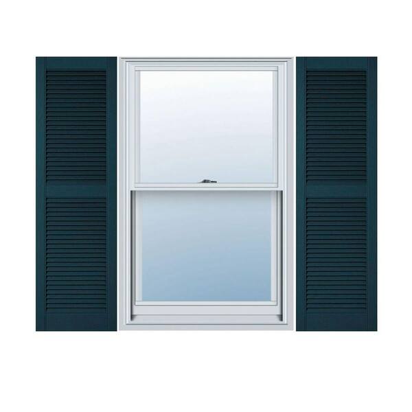 14-1/2 in. x 71 in. Lifetime Vinyl Custom Straight Top Center Mullion Open Louvered Shutters Pair Midnight Blue
