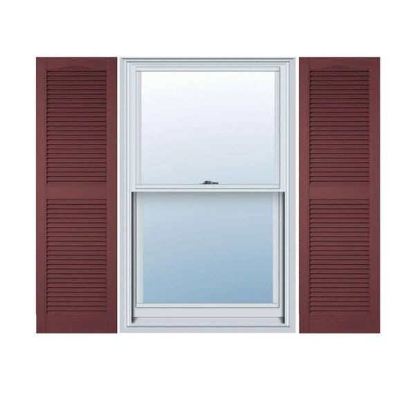 14-1/2 in. x 72 in. Lifetime Vinyl Custom Cathedral Top Center Mullion Open Louvered Shutters Pair Wineberry