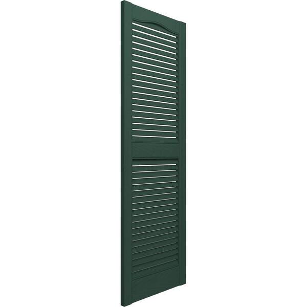 14-1/2 in. x 76 in. Lifetime Vinyl TailorMade Cathedral Top Center Mullion Open Louvered Shutters Pair Midnight Green
