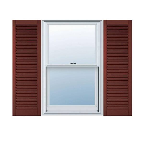 14-1/2 in. x 90 in. Lifetime Vinyl Custom Straight Top All Open Louvered Shutters Pair Burgundy Red