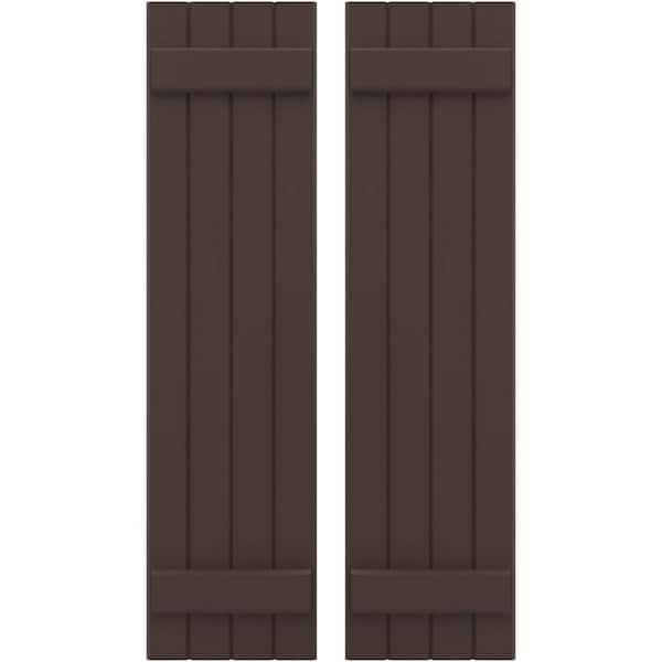 14 in. W x 37 in. H Americraft 4 Board Exterior Real Wood Joined Board and Batten Shutters Raisin Brown