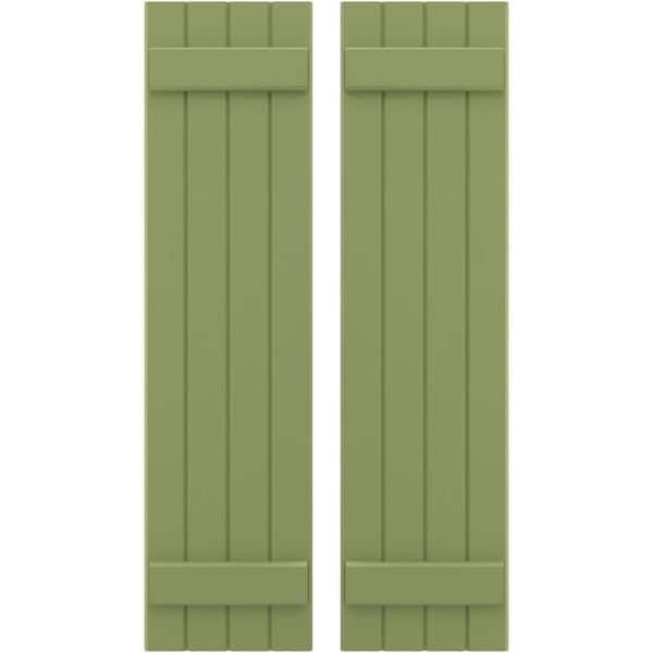 14 in. W x 44 in. H Americraft 4-Board Exterior Real Wood Joined Board and Batten Shutters in Moss Green