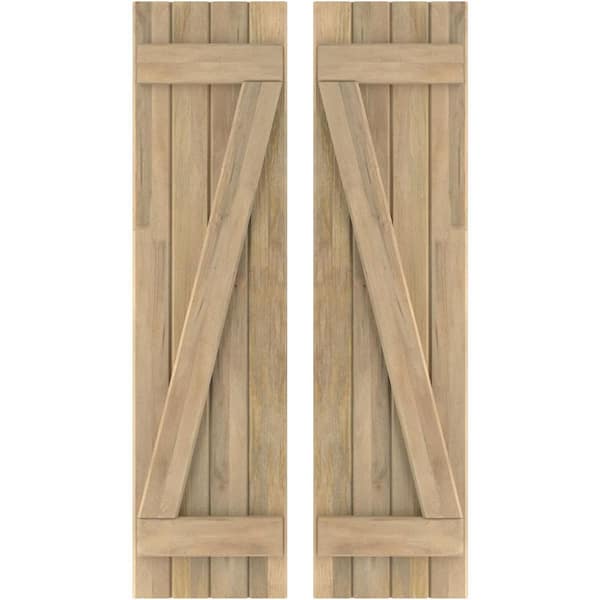 14 in. W x 49 in. H Americraft 4 Board Exterior Real Wood Joined Board and Batten Shutters with Z-Bar Unfinished