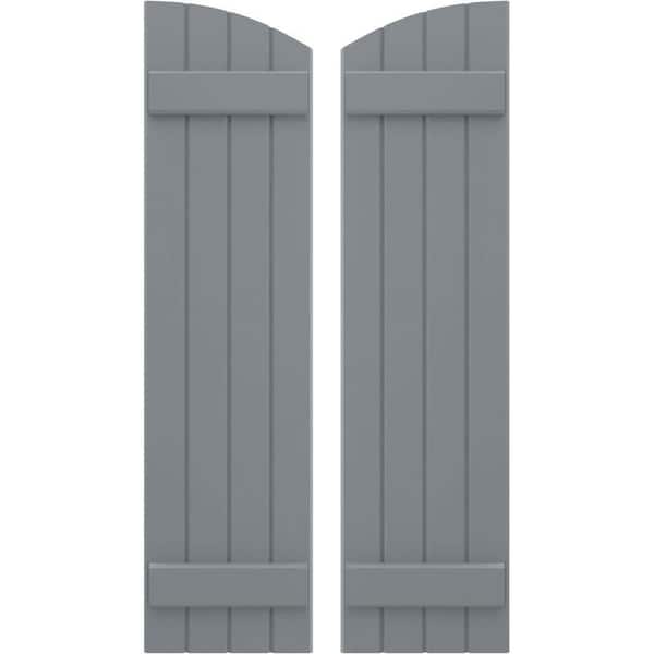 14 in. W x 57 in. H Americraft Exterior Real Wood Joined Board and Batten Shutters Elliptical Top Ocean Swell