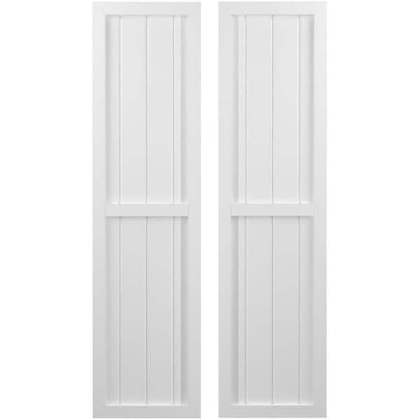 14 in. W x 66 in. H Americraft 4-Board Exterior Real Wood 2 Equal Panel Framed Board and Batten Shutters in White