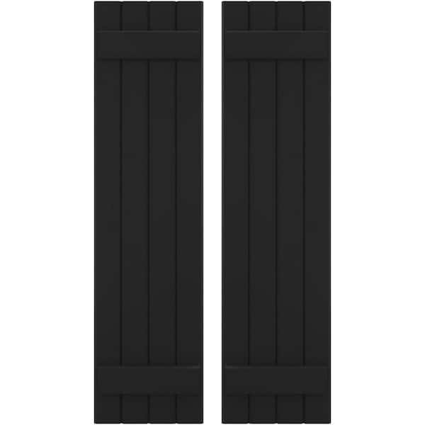 14 in. W x 75 in. H Americraft 4 Board Exterior Real Wood Joined Board and Batten Shutters Black