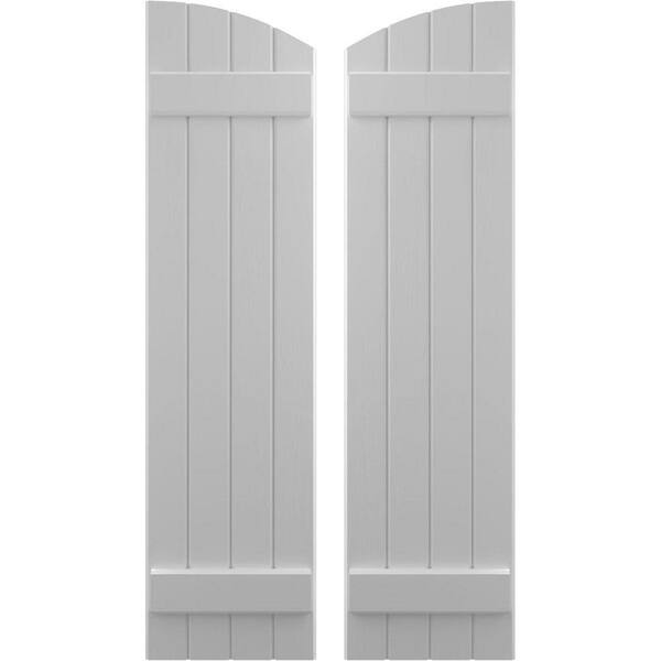 14 in. W x 76 in. H Americraft Exterior Real Wood Joined Board and Batten Shutters Elliptical Top Primed