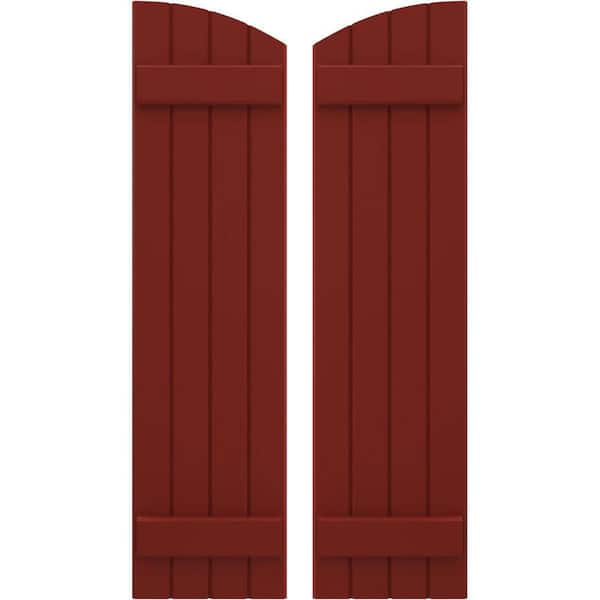14 in. W x 77 in. H Americraft Exterior Real Wood Joined Board and Batten Shutters with Elliptical Top Pepper Red