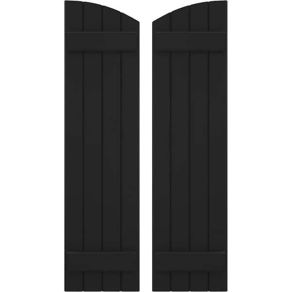 14-in W x 81-in H Americraft Exterior Real Wood Joined Board and Batten Shutters w/Elliptical Top Black