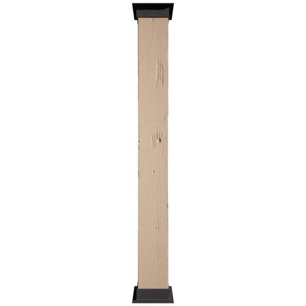 14 in. x 10 ft. Knotty Pine Endurathane Faux Wood Non-Tapered Square Column Wrap w/ Faux Iron Capital & Base