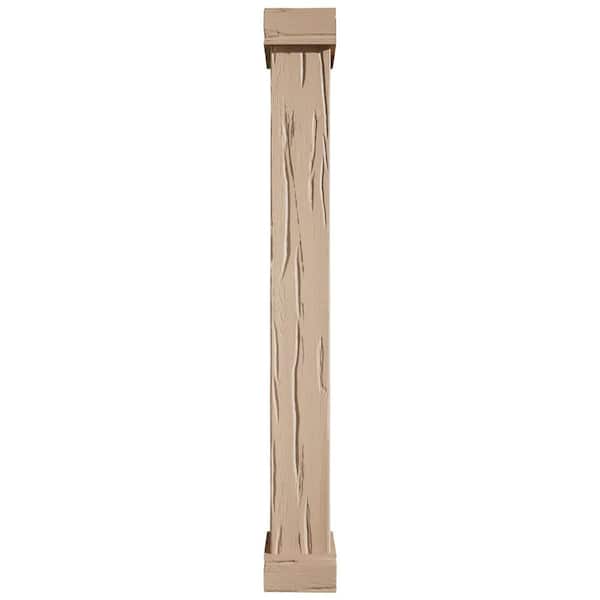 14 in. x 12 ft. River Wood Endurathane Faux Wood Non-Tapered Square Column Wrap with Standard Capital and Base