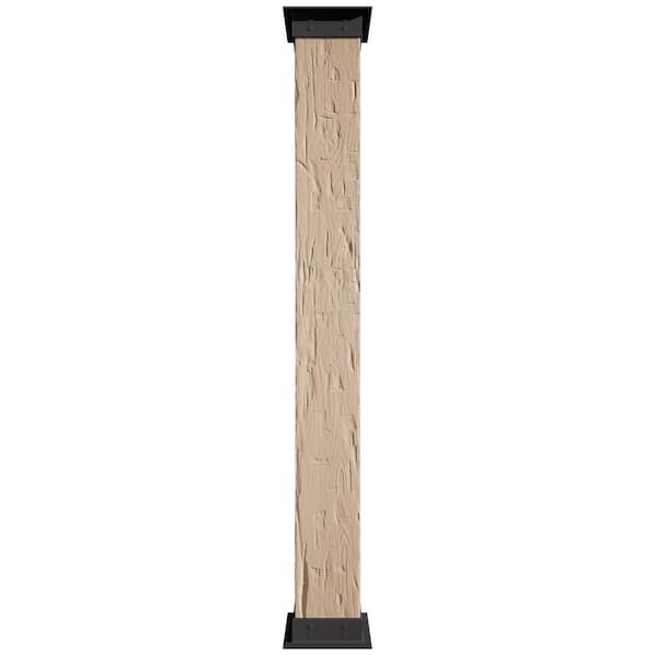 14 in. x 18 ft. Hand Hewn Endurathane Faux Wood Non-Tapered Square Column Wrap w/ Faux Iron Capital & Base