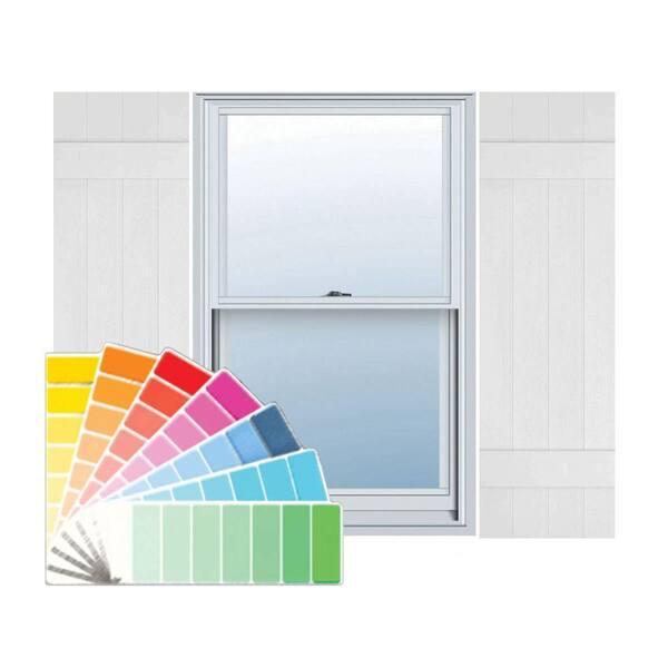 14 in. x 26 in. Lifetime Vinyl Custom Four Board Joined Board and Batten Shutters Pair Paintable