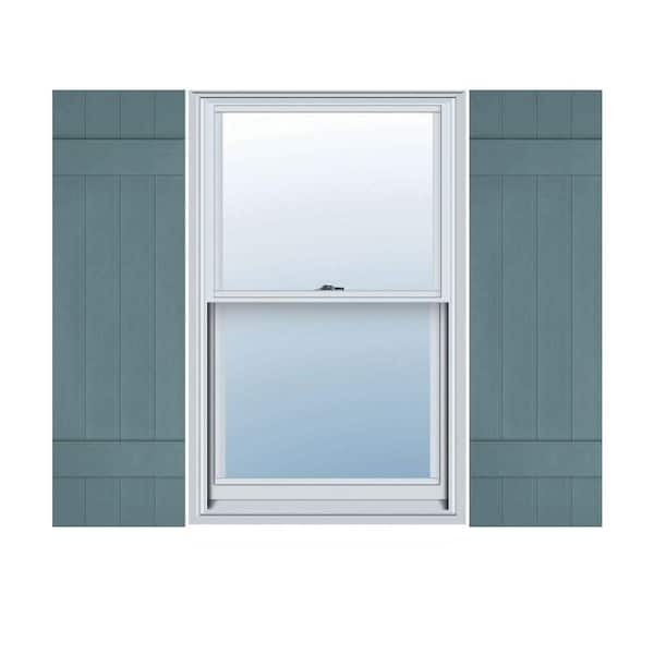 14 in. x 26 in. Lifetime Vinyl Custom Four Board Joined Board and Batten Shutters Pair Wedgewood Blue