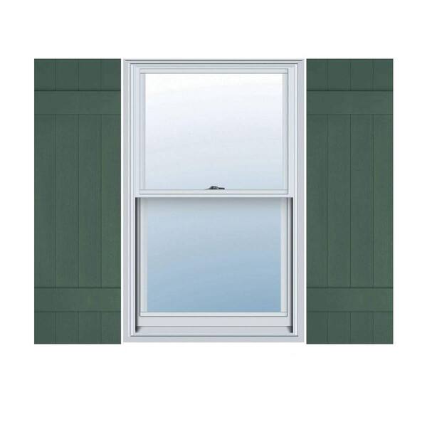 14 in. x 29 in. Lifetime Vinyl Custom Four Board Joined Board and Batten Shutters Pair Forest Green