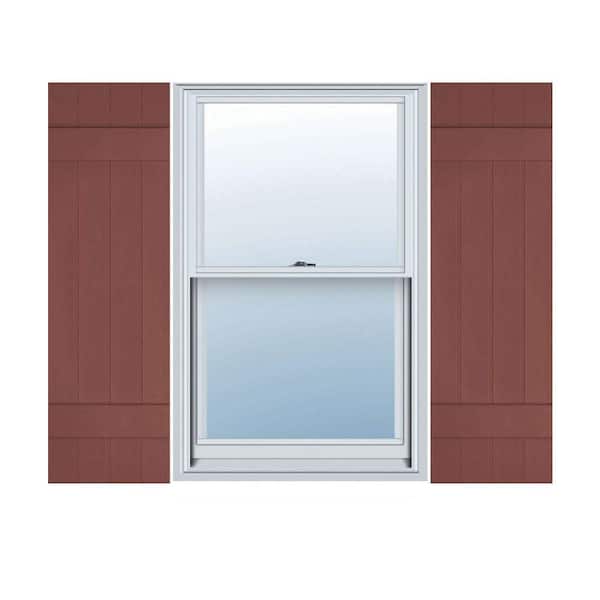 14 in. x 32 in. Lifetime Vinyl Custom Four Board Joined Board and Batten Shutters Pair Burgundy Red