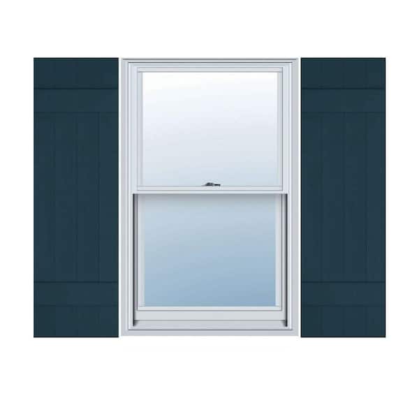 14 in. x 34 in. Lifetime Vinyl Custom Four Board Joined Board and Batten Shutters Pair Midnight Blue