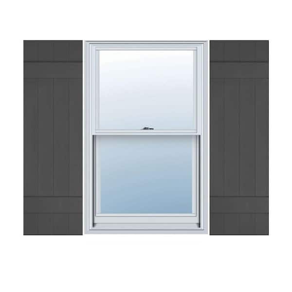 14 in. x 51 in. Lifetime Vinyl Custom Four Board Joined Board and Batten Shutters Pair Tuxedo Grey