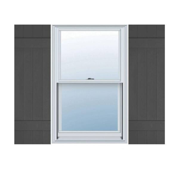 14 in. x 53 in. Lifetime Vinyl Custom Four Board Joined Board and Batten Shutters Pair Tuxedo Grey