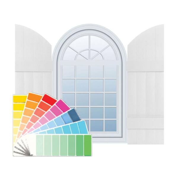 14 in. x 54 in. Lifetime Vinyl Custom Four Board Joined w/ Archtop Board and Batten Shutters Pair Paintable
