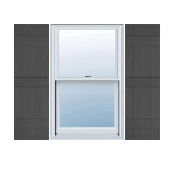14 in. x 56 in. Lifetime Vinyl Custom Four Board Joined Board and Batten Shutters Pair Tuxedo Grey