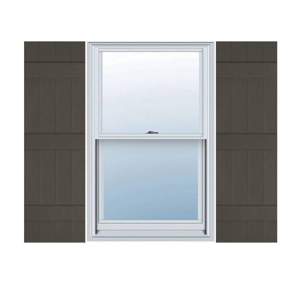 14 in. x 63 in. Lifetime Vinyl Custom Four Board Joined Board and Batten Shutters Pair Musket Brown