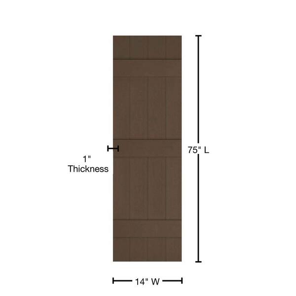 14 in. x 75 in. Lifetime Vinyl Standard Four Board Joined Board and Batten Shutters Pair Federal Brown